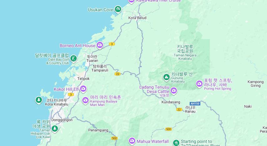 코타키나발루 시내에서 키나발루산 국립공원 입구까지는 약 90km 거리, 차량으로 2시간 전후 소요됩니다.